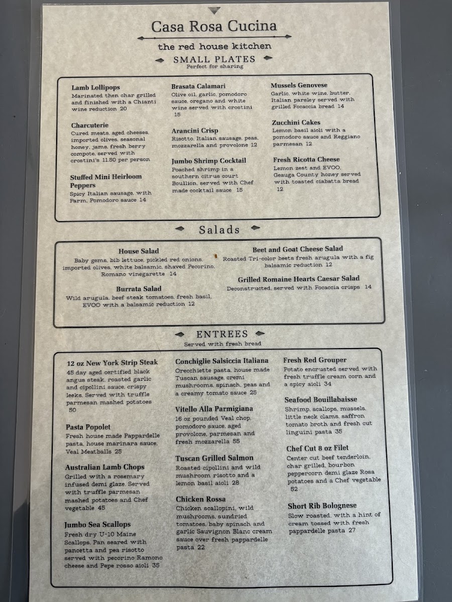 Casa Rosa Cucina Red House Kitchen Menu has a way of pulling you in the moment you sit down, thanks to its warm, laid-back vibe tucked along 9350 Chillicothe Rd in Willoughby, OH. As you look through the dishes, you’ll notice how the menu leans into familiar comfort while still surprising you with little twists that make each plate feel special. There’s this easy rhythm to the offerings - nothing feels rushed, and everything seems thoughtfully placed, whether you’re craving something light to start or diving straight into a hearty favorite.